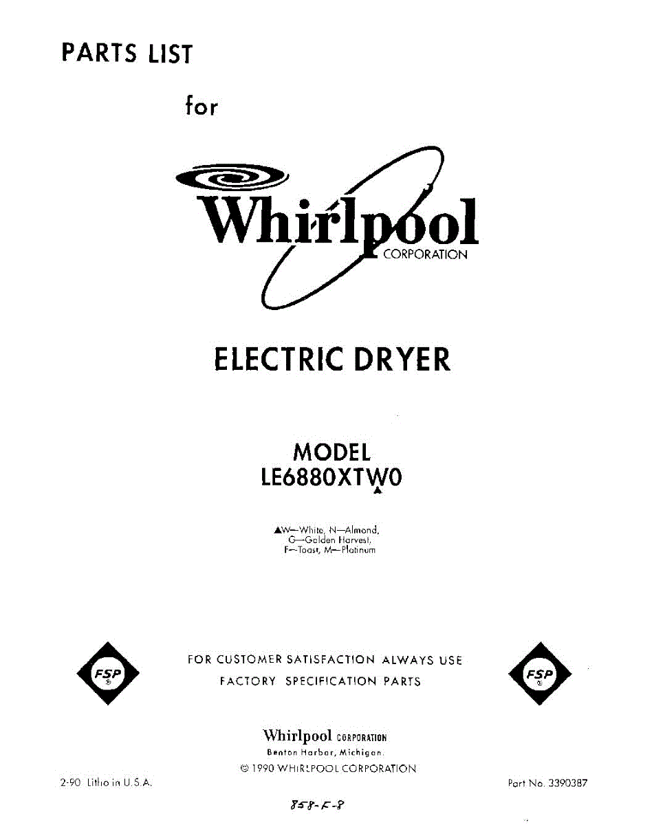 Parts for Whirlpool LE6880XTF0: 01 - Section Parts