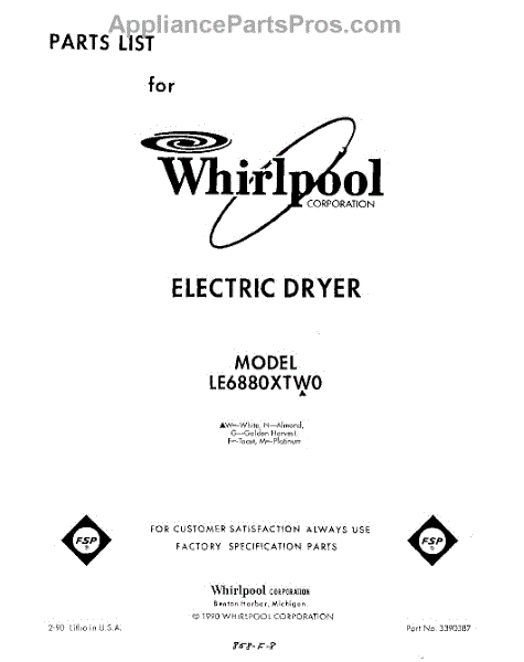 Parts for Whirlpool LE6880XTW0: 01 - Section Parts