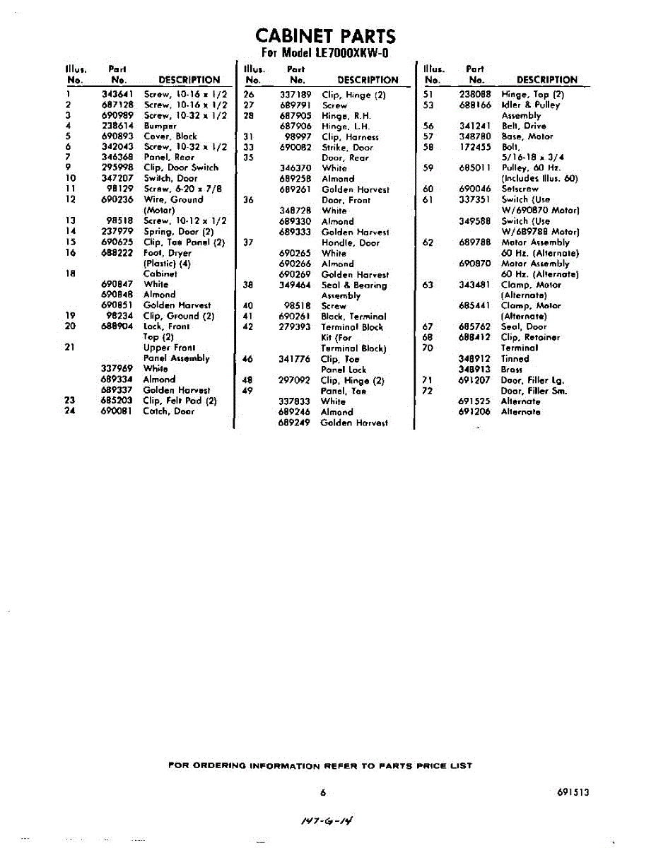 Parts for Whirlpool LE7000XKW0: 06 - Section Parts
