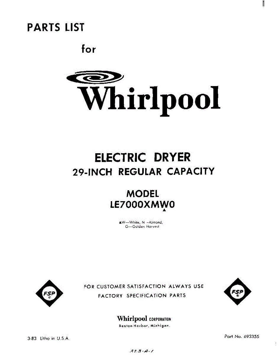 Parts for Whirlpool LE7000XMW0: 01 - Section Parts