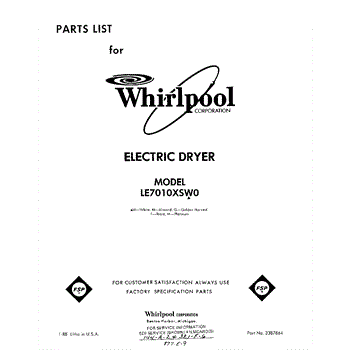 Parts for Whirlpool LE7010XSW0: 01 - Section Parts