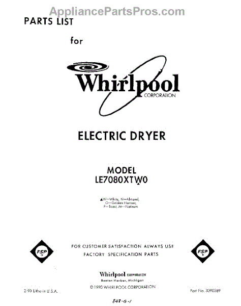 Parts for Whirlpool LE7080XTW0: 01 - Section Parts