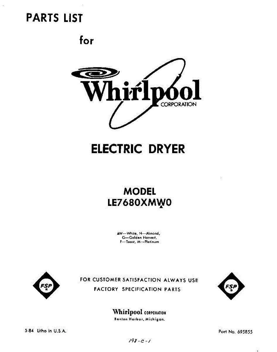 Parts for Whirlpool LE7680XMW0: 01 - Section Parts