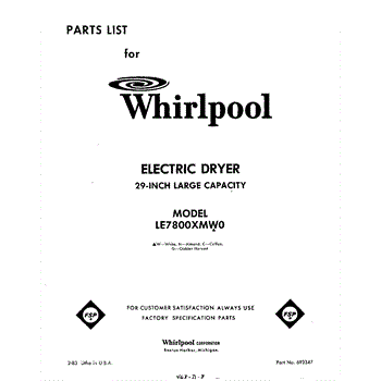 Parts for Whirlpool LE7800XMW0: 01 - Section Parts