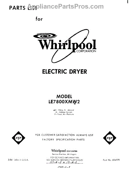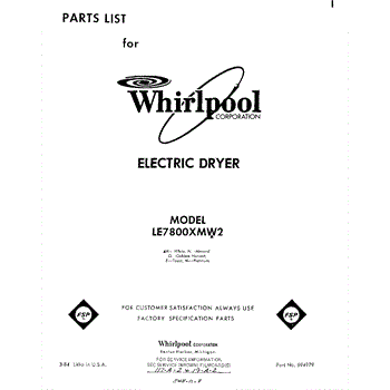 Parts for Whirlpool LE7800XMW2: 01 - Section Parts