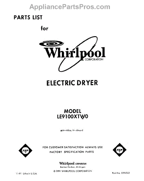 Parts for Whirlpool LE9100XTN0: 01 - Section Parts