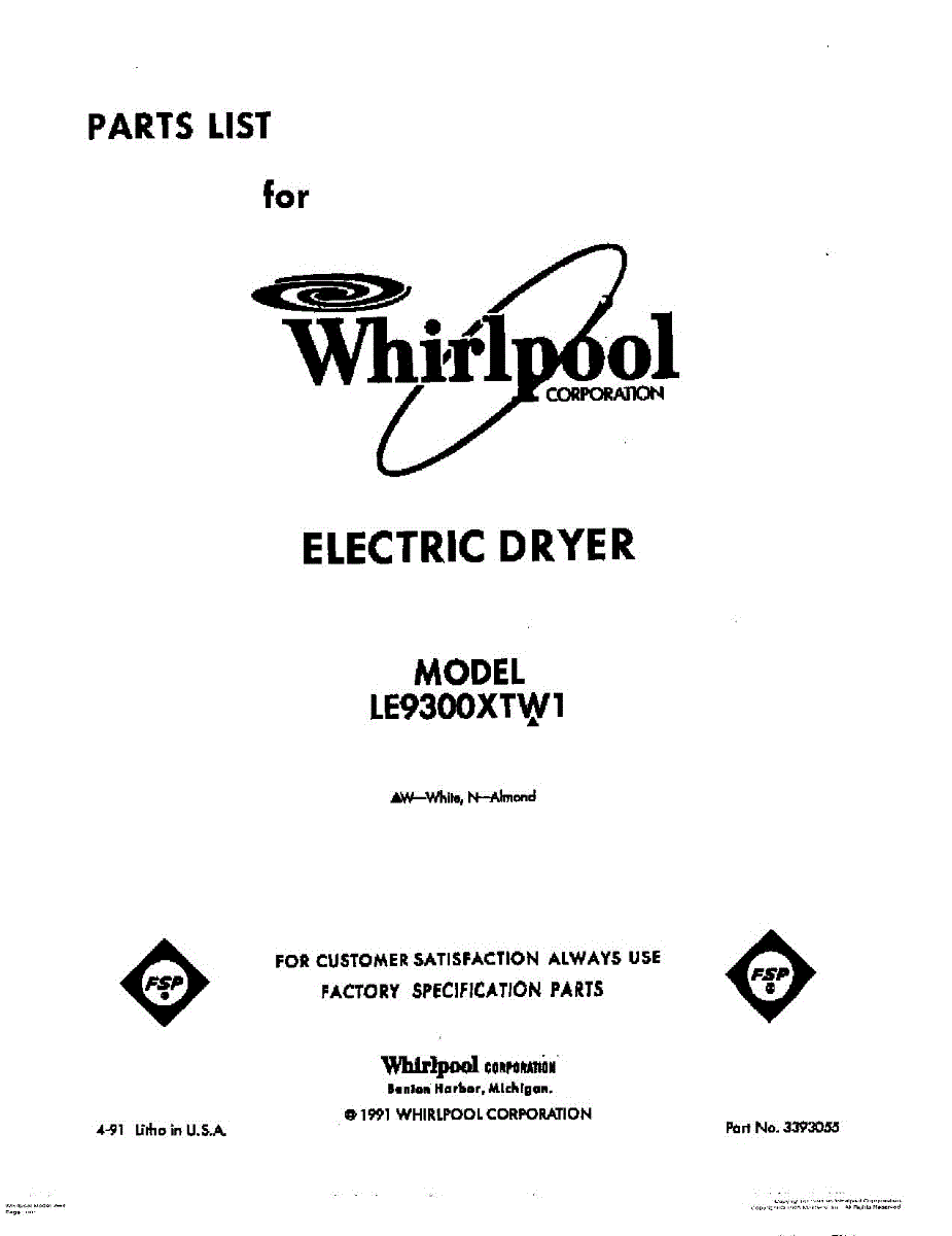Parts for Whirlpool LE9300XTN1: 01 - Section Parts