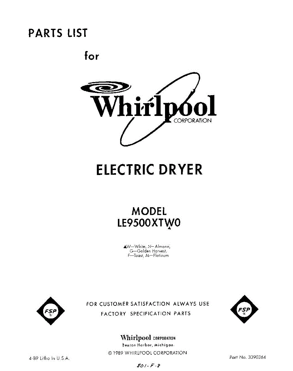 Parts for Whirlpool LE9500XTF0: 01 - Section Parts