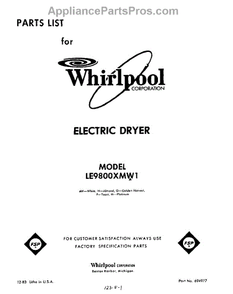 Parts for Whirlpool LE9800XMW1: 01 - Section Parts