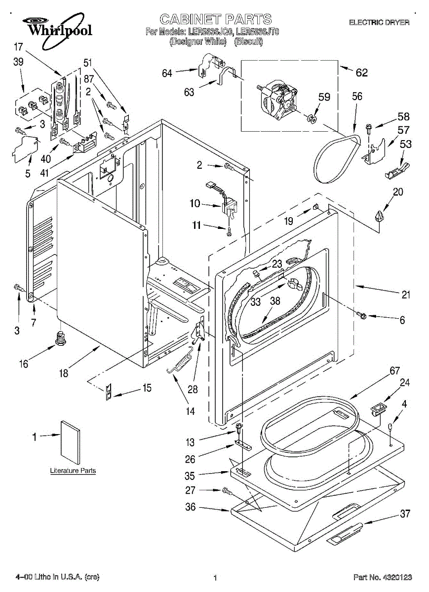 Biscuit-colored door handle for your dryer. Installs on the front door panel. Replace if your existing handle is cracked, broken, or missing.