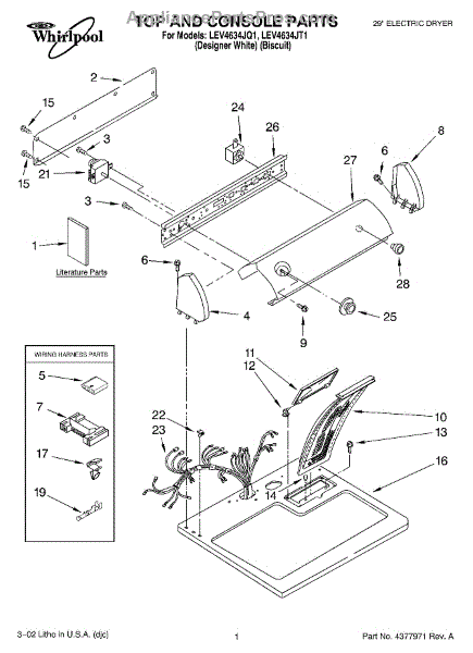 Parts for Whirlpool LEV4634JT1: 01 - Section Parts