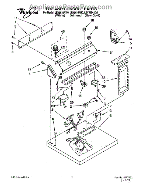 Parts for Whirlpool LEV5634AG0: 01 - Section Parts