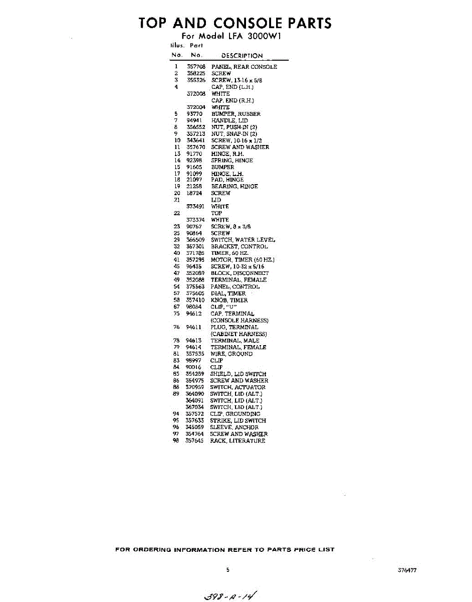 Parts for Whirlpool LFA3000W1: 05 - Section Parts