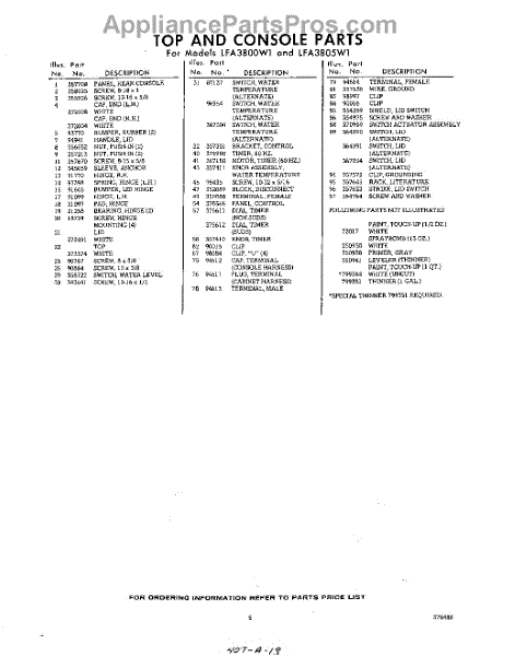 Parts for Whirlpool LFA3800W1: 05 - Section Parts