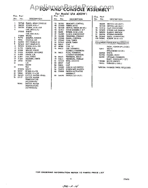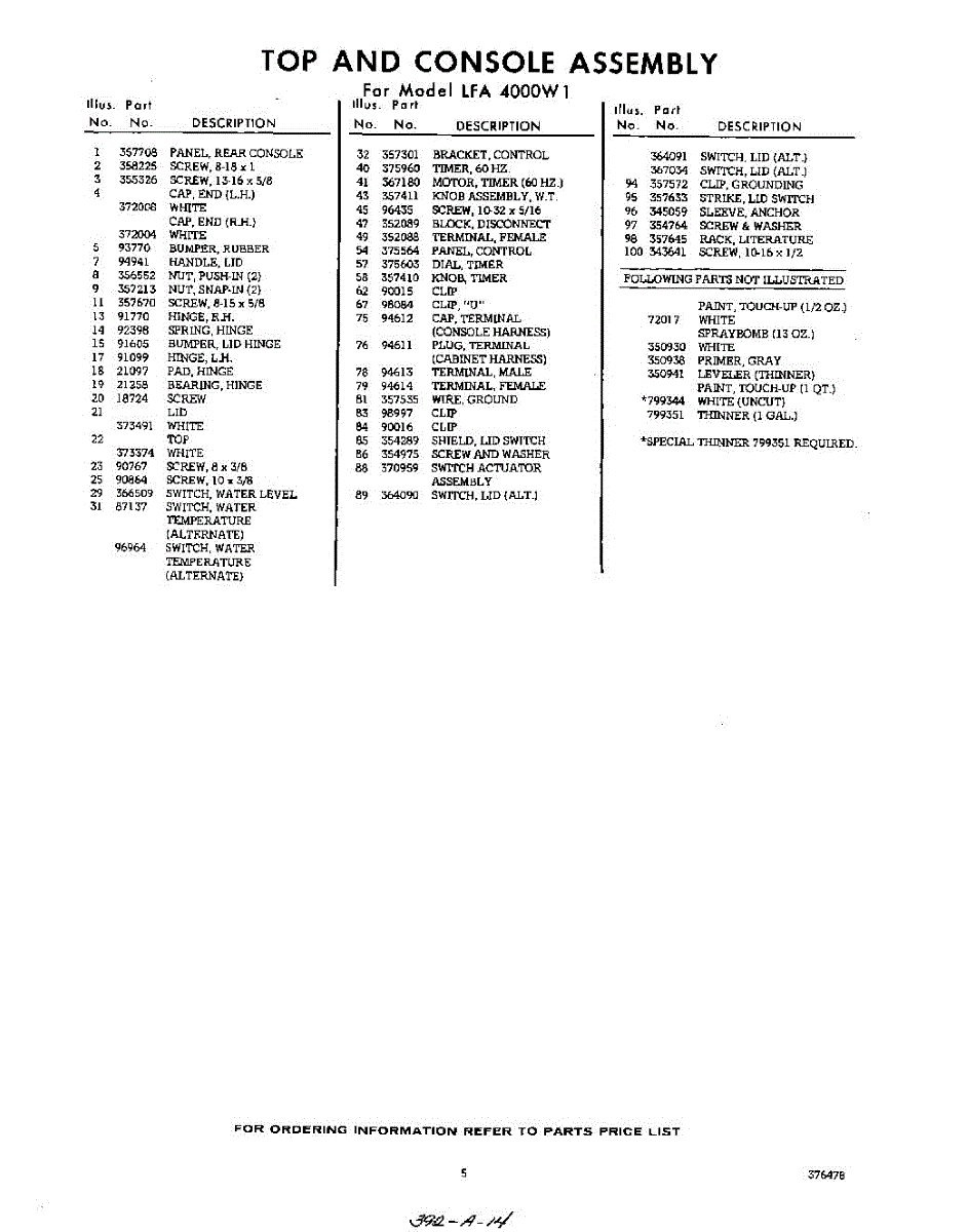 Parts for Whirlpool LFA4000W1: 05 - Section Parts