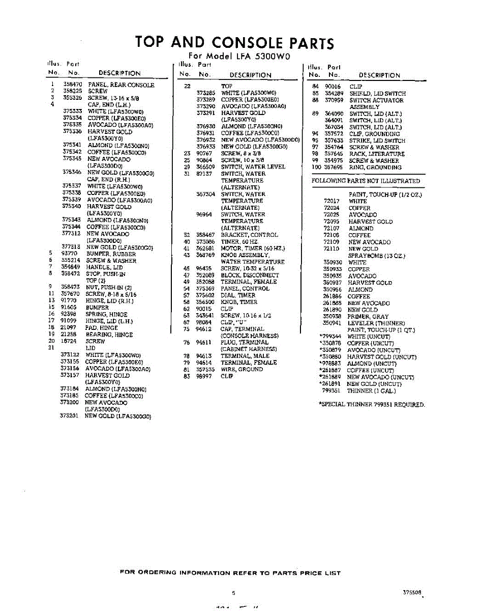 Parts for Whirlpool LFA5300W0: 05 - Section Parts