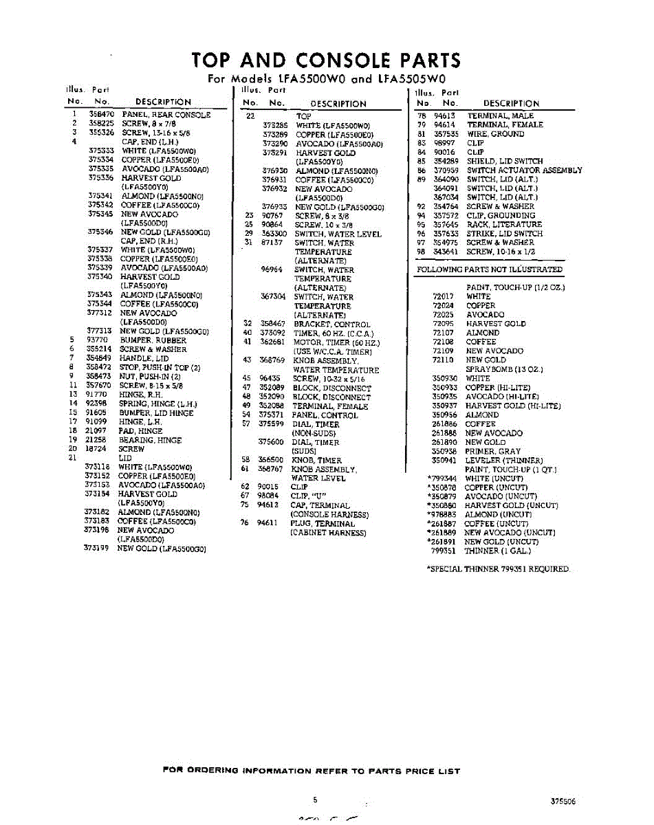 Parts for Whirlpool LFA5500W0: 05 - Section Parts