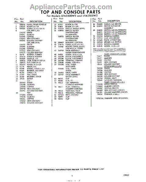 Parts for Whirlpool LFA5500W2: 05 - Section Parts