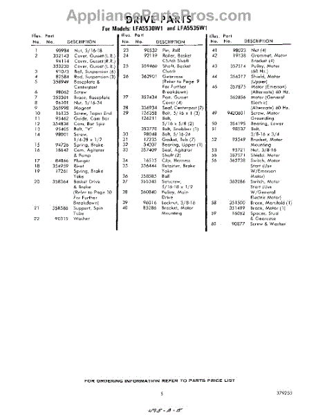 Parts for Whirlpool LFA5535W1: 05 - Section Parts