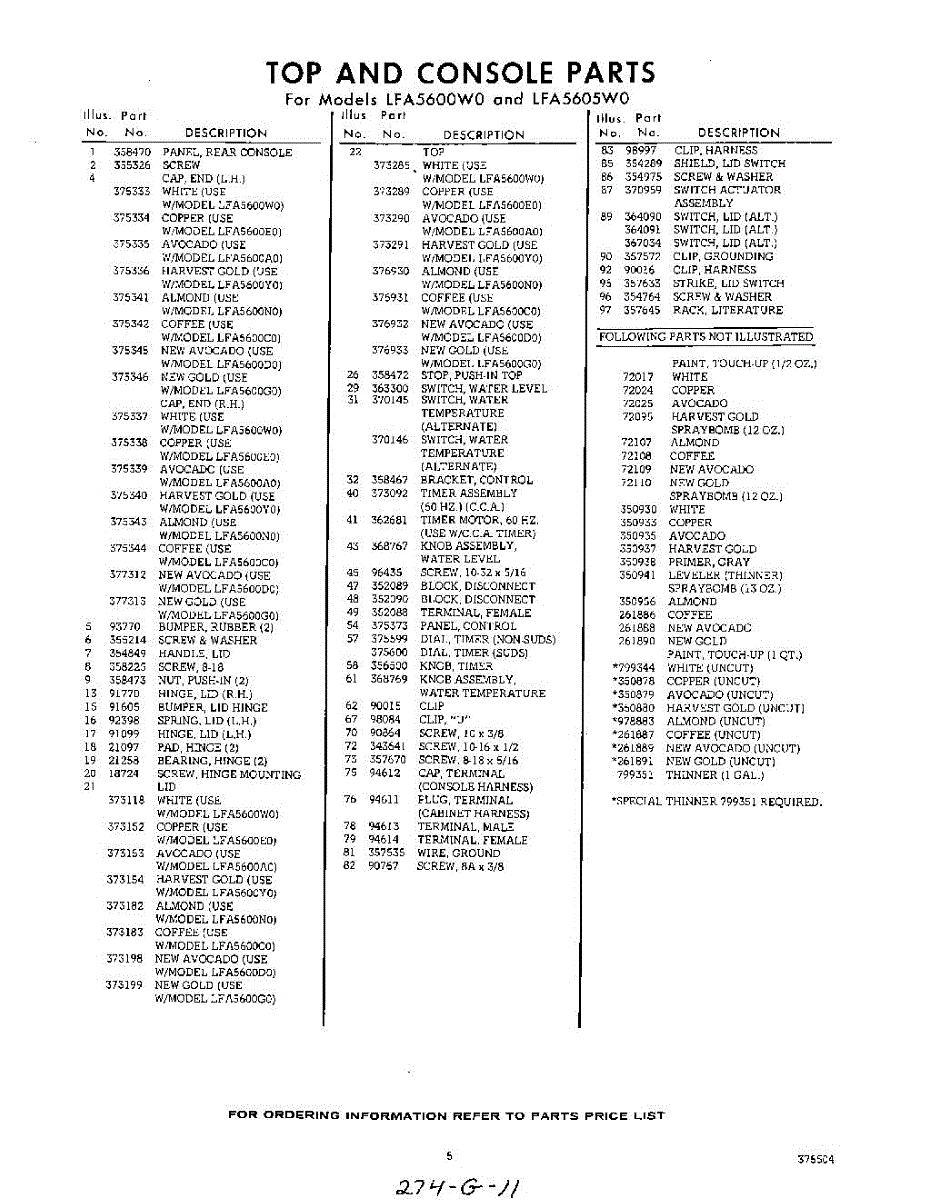Parts for Whirlpool LFA5600W0: 05 - Section Parts