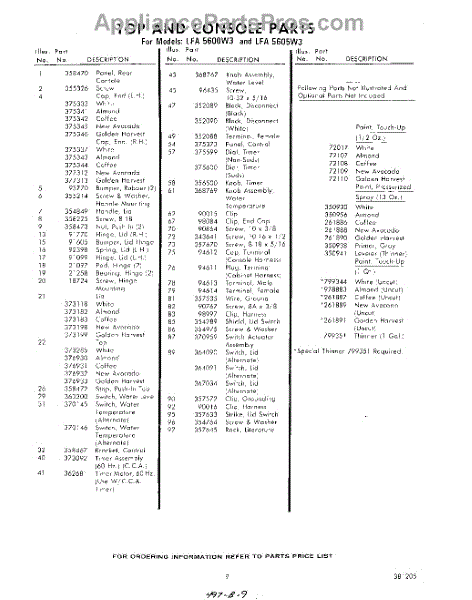 Parts for Whirlpool LFA5600W3: 09 - Section Parts