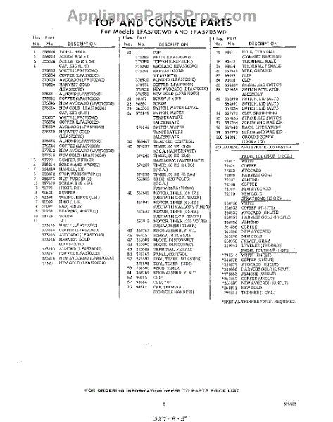 Parts for Whirlpool LFA5700W0: 05 - Section Parts