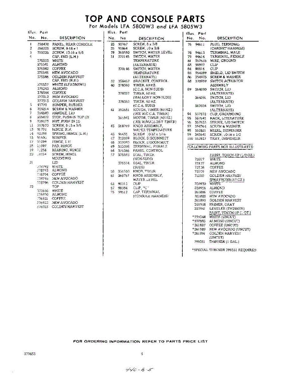 Parts for Whirlpool LFA5800W3: 05 - Section Parts