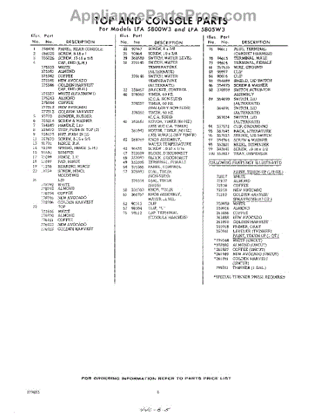 Parts for Whirlpool LFA5805W3: 05 - Section Parts