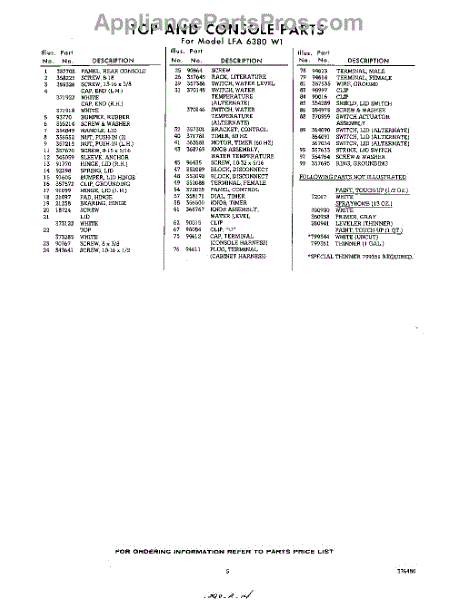 Parts for Whirlpool LFA6380W1: 05 - Section Parts