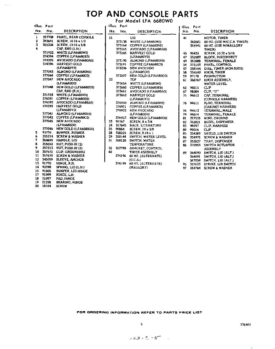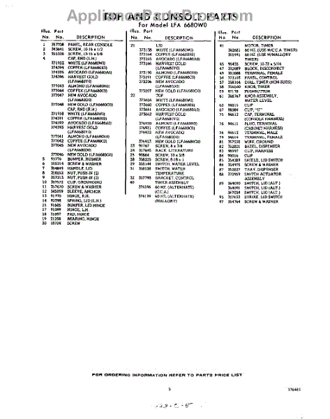 Parts for Whirlpool LFA6680W0: 05 - Section Parts