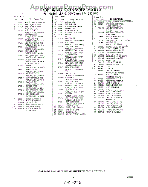Parts for Whirlpool LFA6800W0: 05 - Section Parts