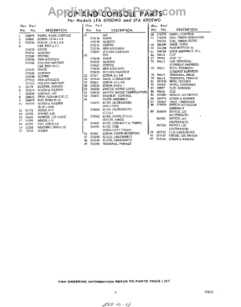 Parts for Whirlpool LFA6900W0: 05 - Section Parts