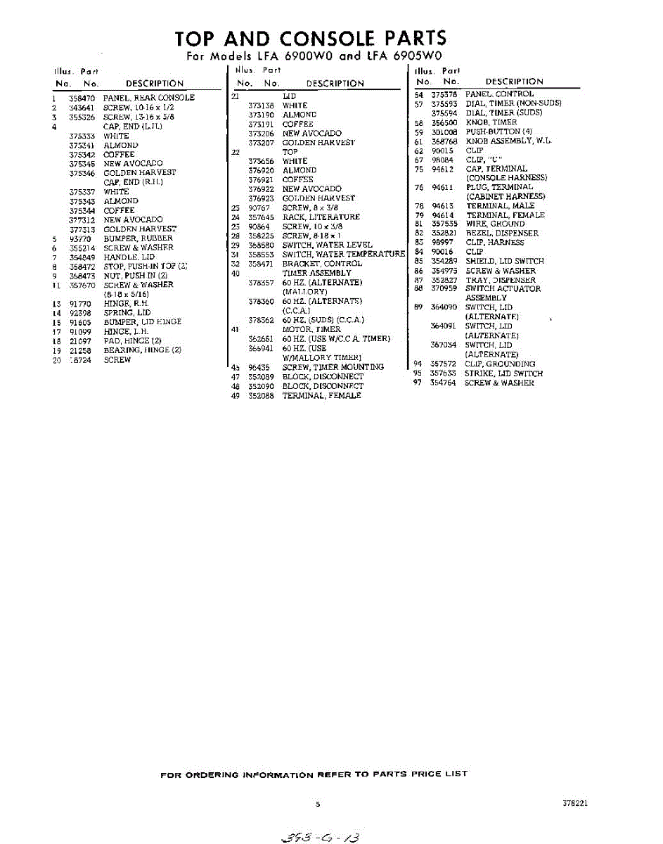 Parts for Whirlpool LFA6905W0: 05 - Section Parts