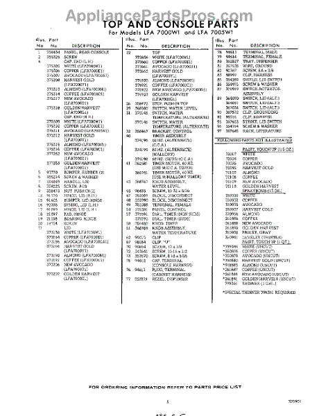 Parts for Whirlpool LFA7005W1: 05 - Section Parts