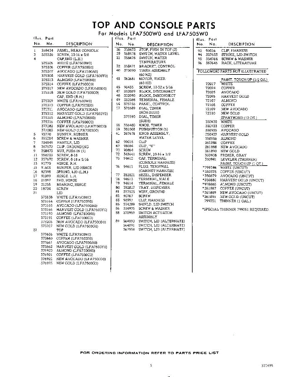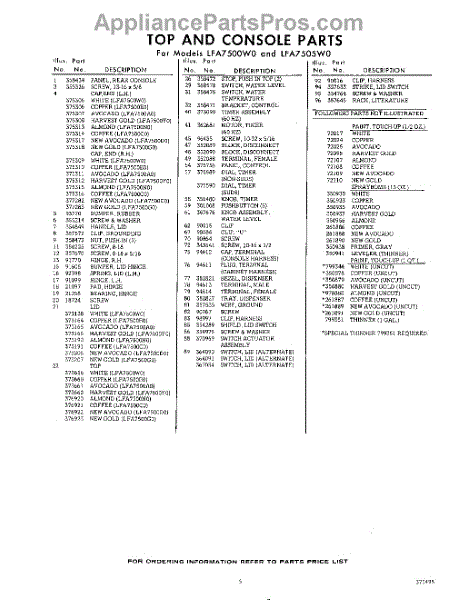 Parts for Whirlpool LFA7505W0: 05 - Section Parts