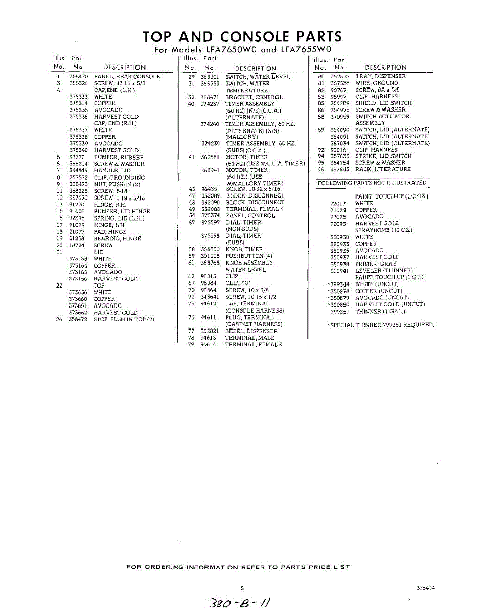 Parts for Whirlpool LFA7655W0: 05 - Section Parts