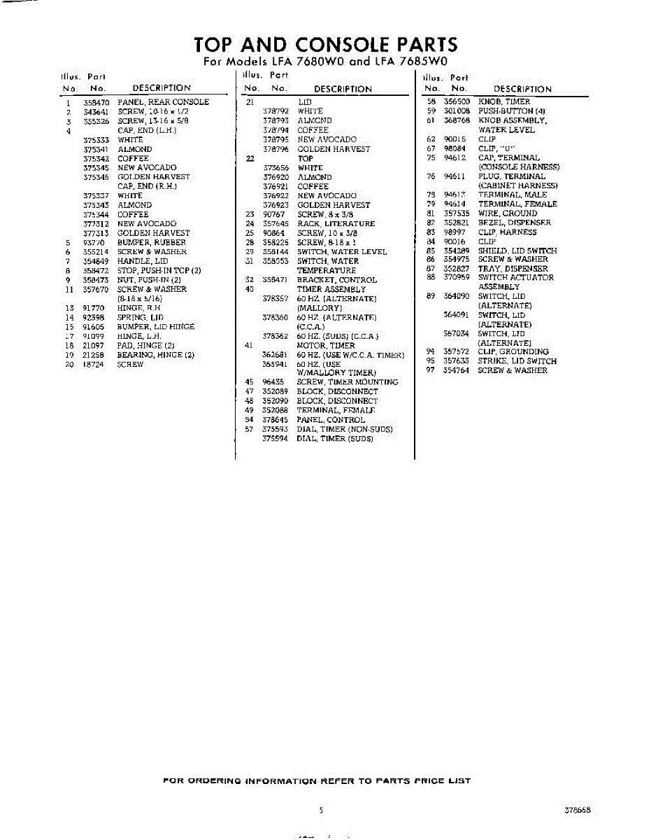Parts for Whirlpool LFA7685W0: 05 - Section Parts