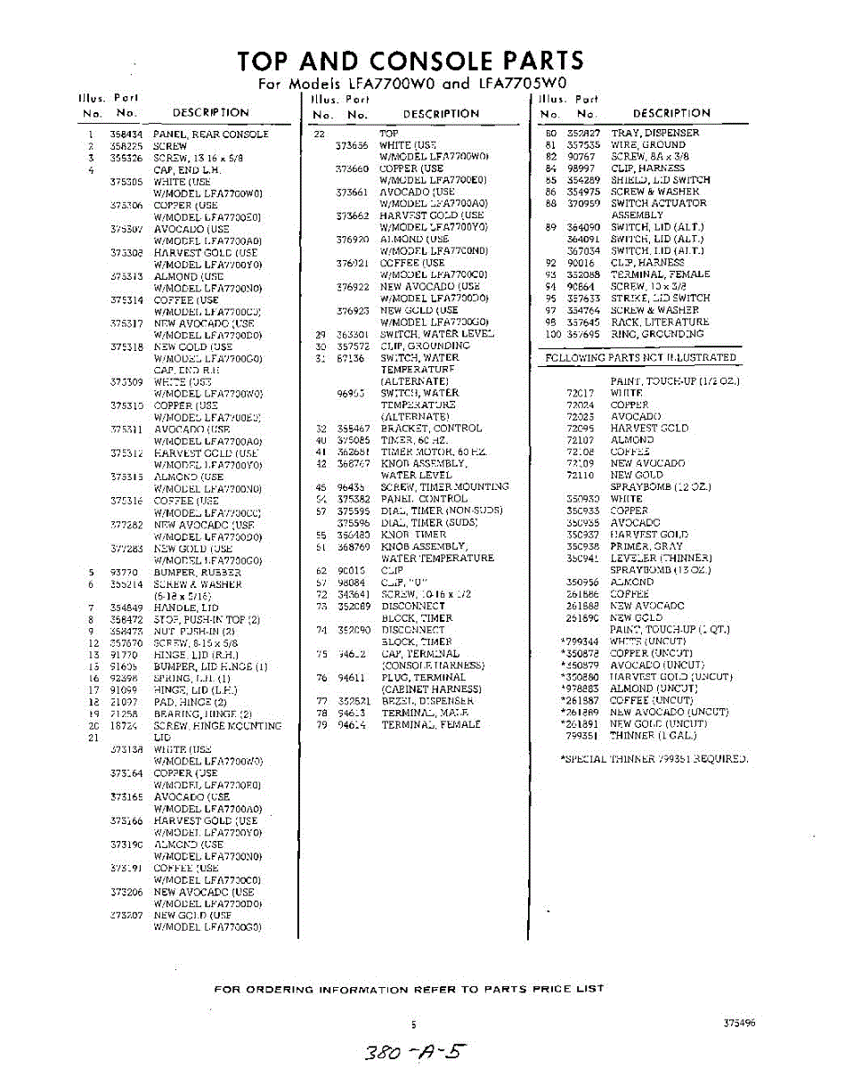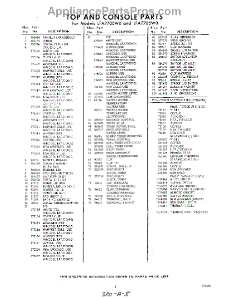 Parts for Whirlpool LFA7705W0: 05 - Section Parts