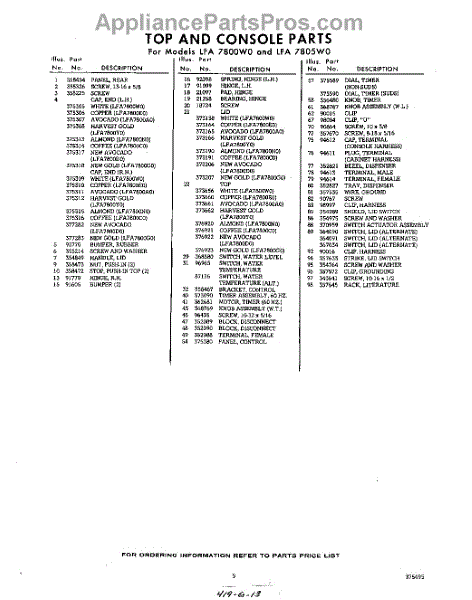 Parts for Whirlpool LFA7805W0: 05 - Section Parts
