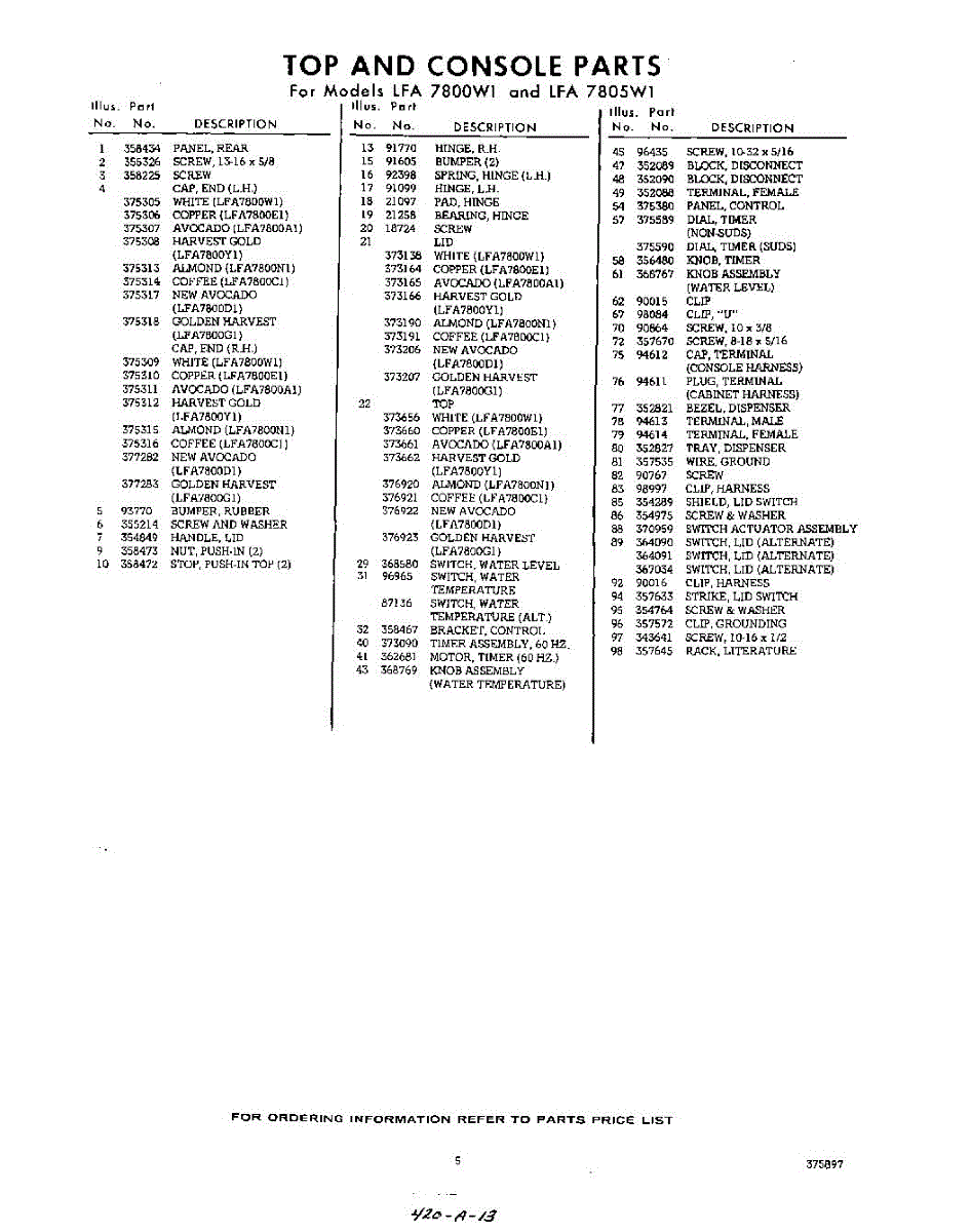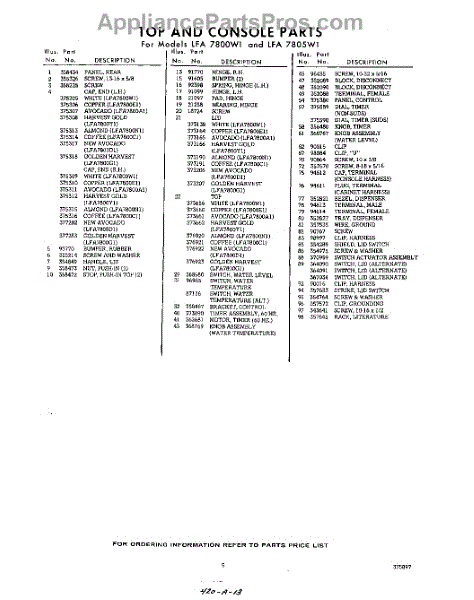Parts for Whirlpool LFA7805W1: 05 - Section Parts