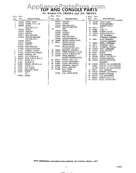 Parts for Whirlpool LFA7805W4: 05 - Section Parts