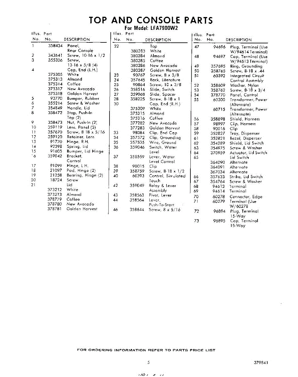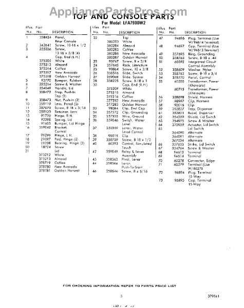 Parts for Whirlpool LFA7900W2: 05 - Section Parts