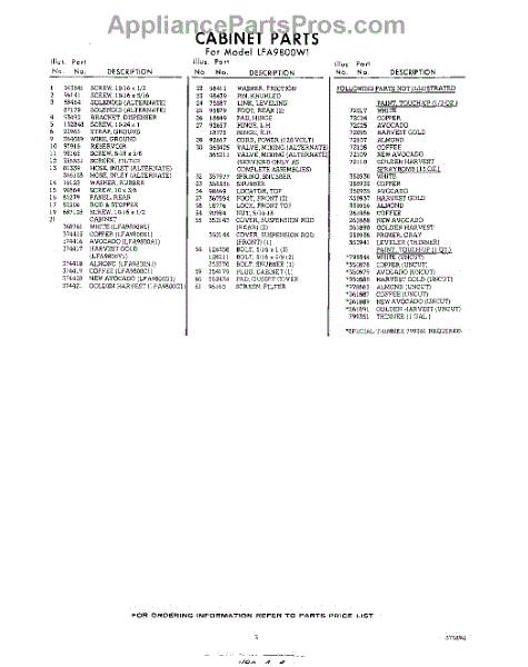 Parts for Whirlpool LFA9800W1: 03 - Section Parts