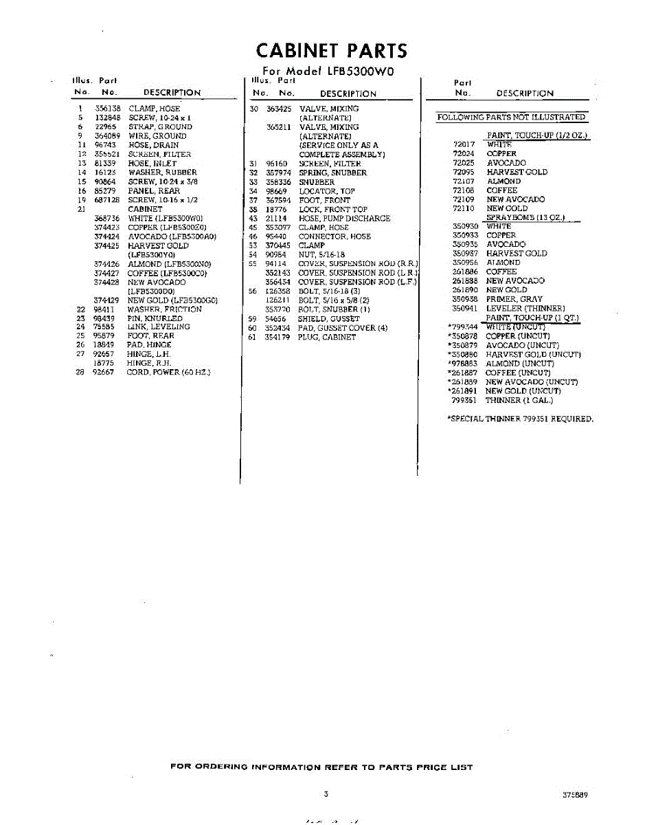 Parts for Whirlpool LFB5300W0: 03 - Section Parts