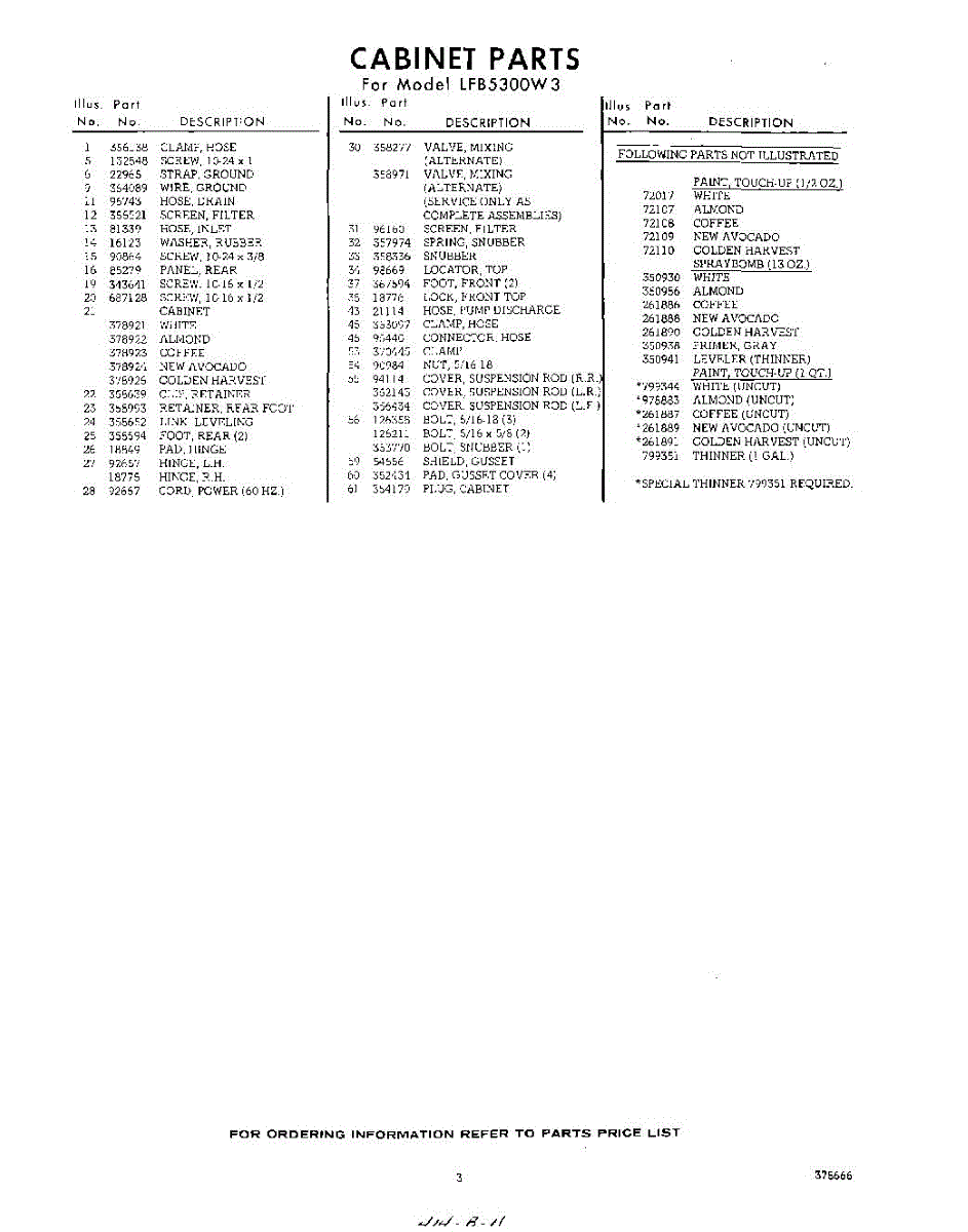 Parts for Whirlpool LFB5300W3: 03 - Section Parts