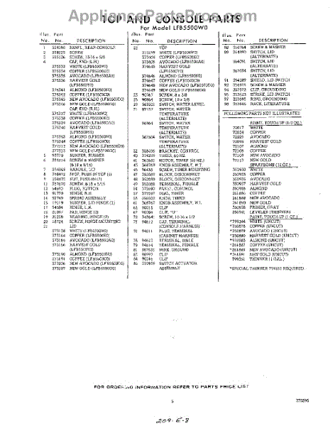 Parts for Whirlpool LFB5500W0: 05 - Section Parts
