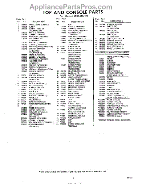 Parts for Whirlpool LFB5500W1: 05 - Section Parts