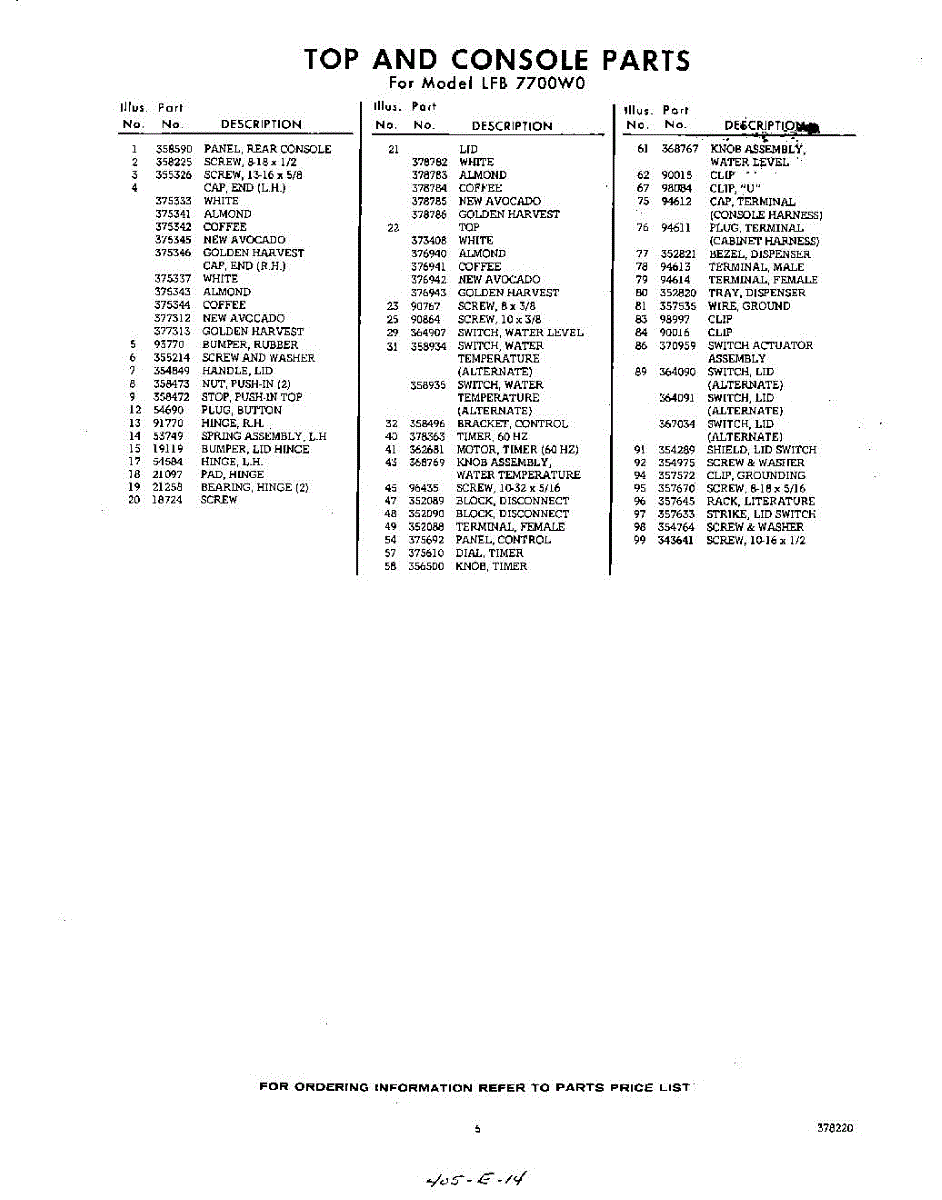 Parts for Whirlpool LFB7700W0: 05 - Section Parts