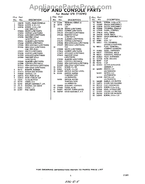 Parts for Whirlpool LFB7750W0: 05 - Section Parts