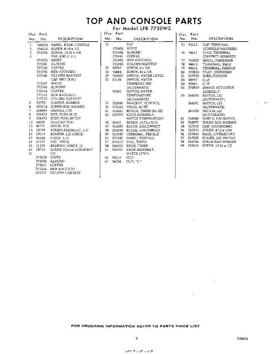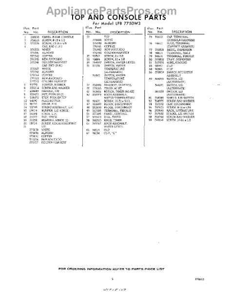 Parts for Whirlpool LFB7750W3: 05 - Section Parts